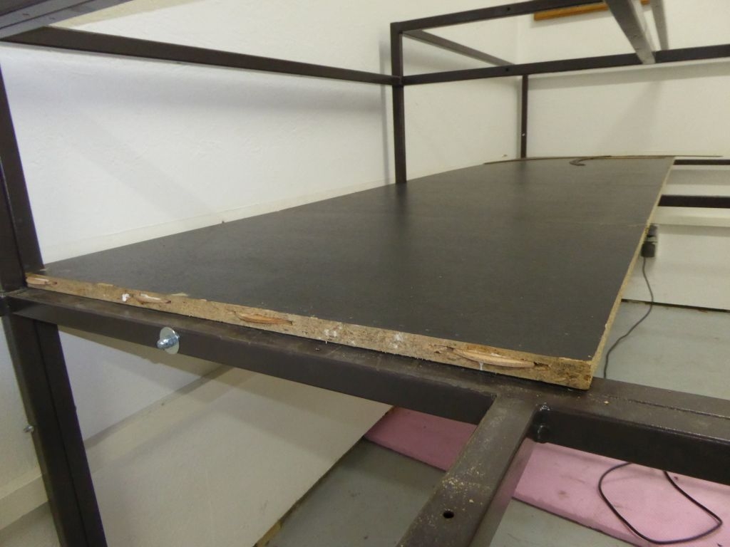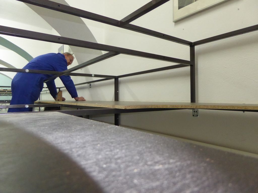 Die Arbeiten am großen Schattenbahnhof schreiten voran. Die Holzplatten konnten bereits bis auf Höhe der Wendel montiert werden.